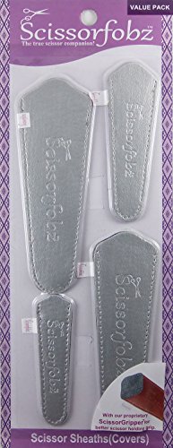 Scissors by SCISSORFOBZ with ScissorGripper -VALUE PACK-4 sizes- Designer Scissor sheaths Covers Holders for embroidery sewing quilting - Quilters sewers gift - Metallic Matte Silver. #31