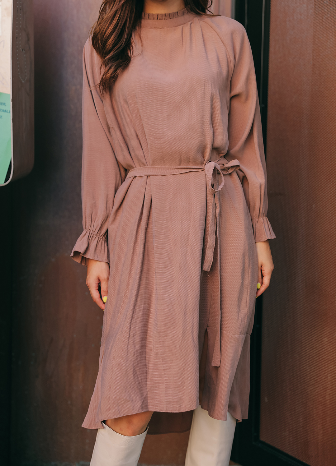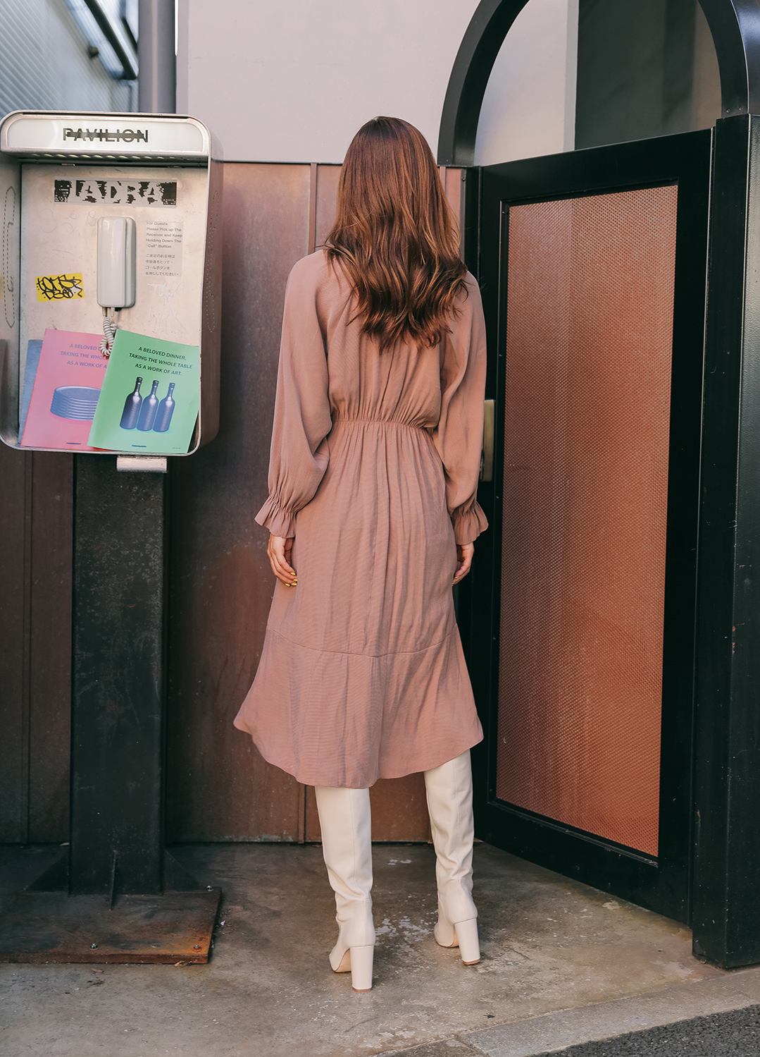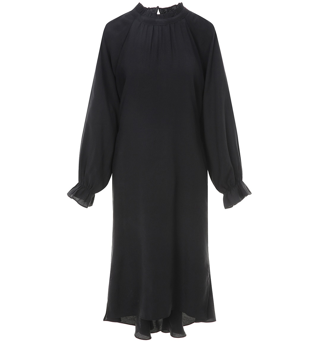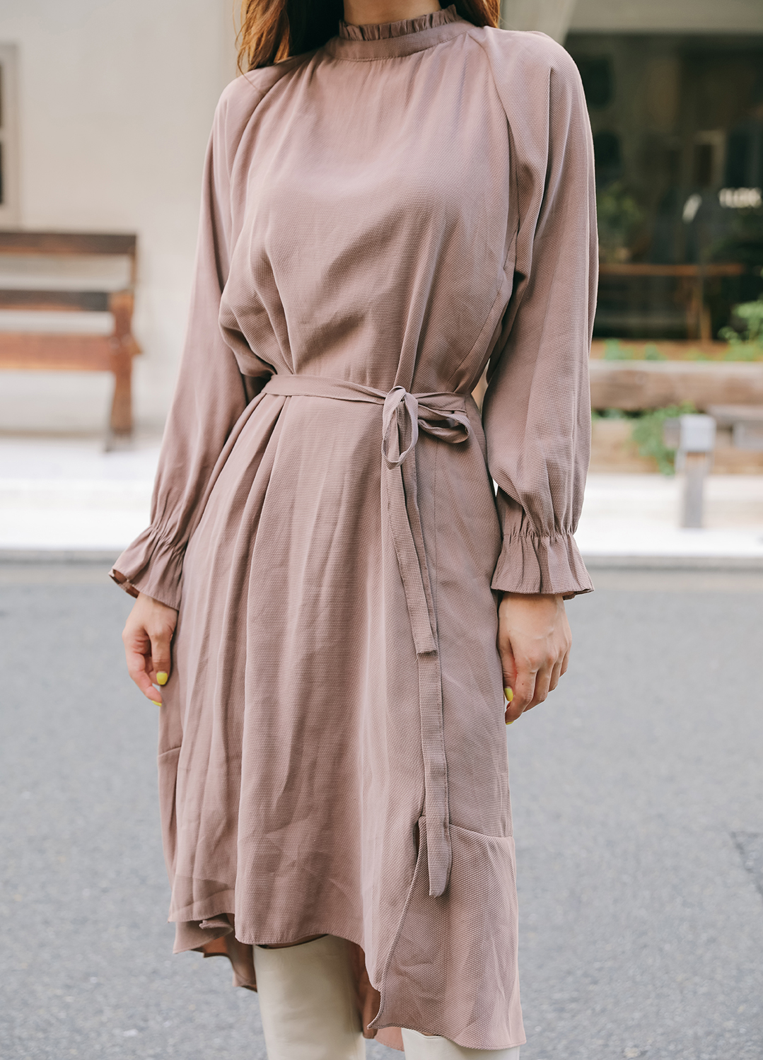 넥 끝에 잡힌 셔링이 사랑스러우면서도 심플한 스타일에 포인트를 줍니다.