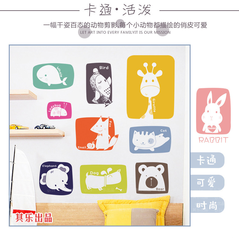卡通动物剪影儿童房宝宝卧室装饰品墙贴纸可爱幼儿园教室布置贴画