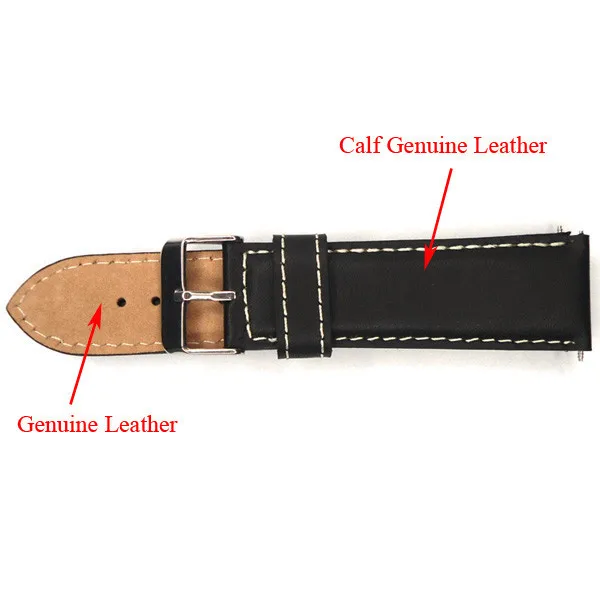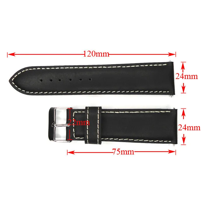 | [해외]정품 가죽 시계 스트랩 24 미리메터 시계 밴드 블랙 빈티지 스타일 손목 스테인레스 스틸 버클 시계 |