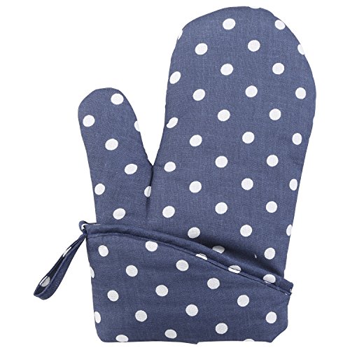 Neoviva Cotton Coated Oven Mitt for Adult, Pack of 2, Polka Dots Crown Blue