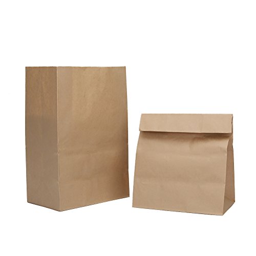 HRX Package Paper Lunch Bags, 4# 9.5"x5"x3" Brown Durable Kraft Paper Bags, Paper Grocery Bags (Pack of 50)