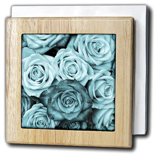 -. Brand : 3dRose -. Feature : Dimensions (in inches): 6 x 6 / Includes 2 - 4" x 4" high gloss ceramic tiles / Made out of solid wood / Tile panels connected by wooden dowels / Some assembly required -. Label : 3dRose LLC -. Manufacturer : 3dRose LLC -. ProductGroup : Kitchen -. ProductTypeName : KITCHEN -. Publisher : 3dRose LLC -. Studio : 3dRose LLC -. Title : 3dRose Florene Flowers - Image of Aqua And Turquoise Roses In Close Up - Tile Napkin Holders