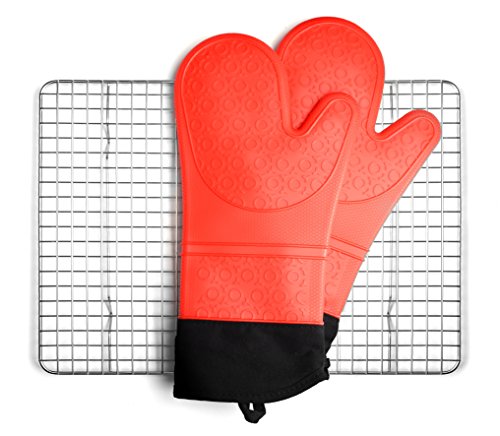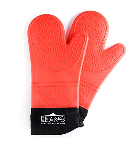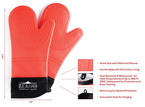 Leano Line Silicone Oven Safe, Waterproof, Heat Resistant, Extra-Long Pair of Mitts