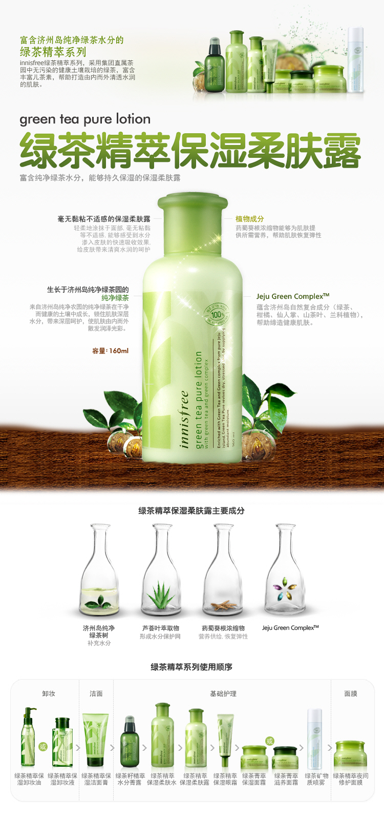 自然のきれいなチェジュのグリーンティー成分が抗酸化効果を与えます。