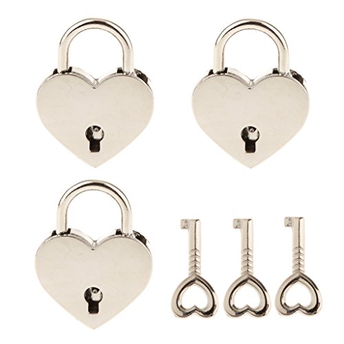 -. Title : Set of 3 Vintage Mini Heart Shape Padlock with Keys Suitcase Lock - Silver M