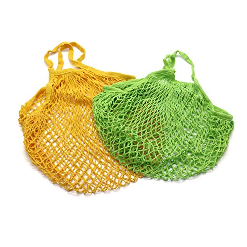 HUELE Foldable Mesh Net Turtle Bag Reusable String Shopping Bag Reusable Fruit Storage Handbag ,2 Pack