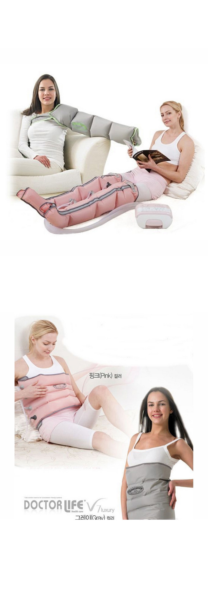 Model: Dr. Life V7 Body & Cuff Color: Pink Rated Fuse: T2AL 250V Power: AC220 ~ AC240V / 60Hz / 50VA Body Size: 260 x 180 x 130 (mm) Body Weight: 2Kg Package Weight: 5.5Kg Lef Cuff Size (L) for Unisex: Circumstance (Thigh): 62cm x Total Cuff length (from Heel to The End of Thigh): 75cm Arm Cuff Size (L) for Unisex: Circumstance: 50cm x 88cm Waist Cuff Size (L) for Unisex: Circumstance: 123cm x Cuff Hight: 38cm Manual: Korean manual is included.
