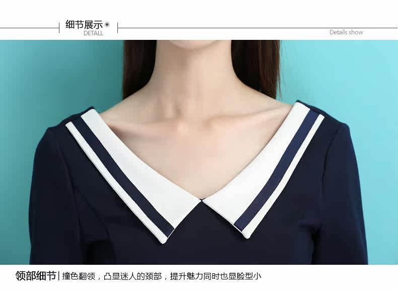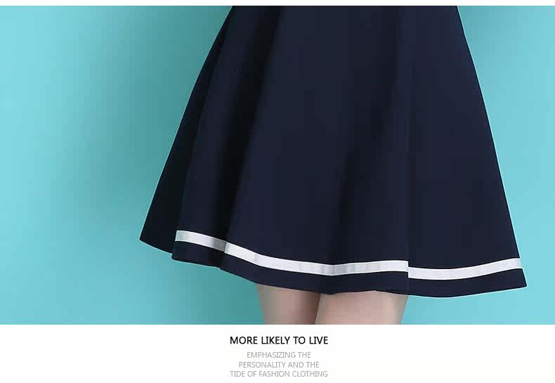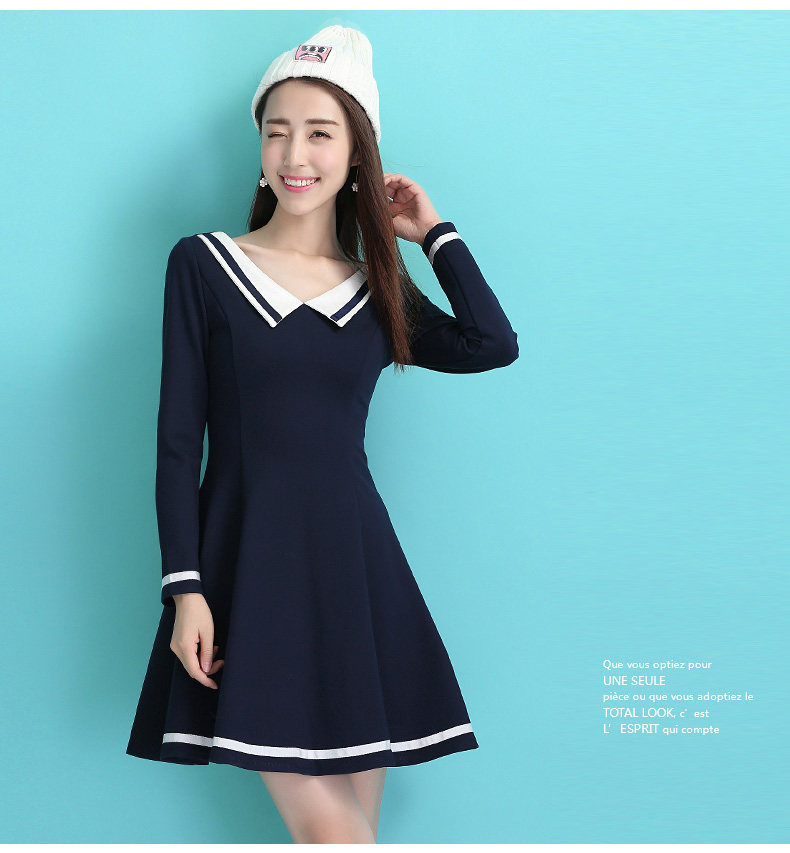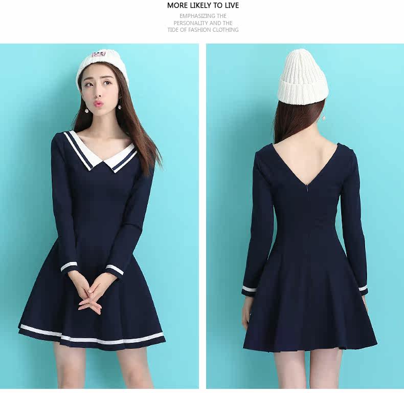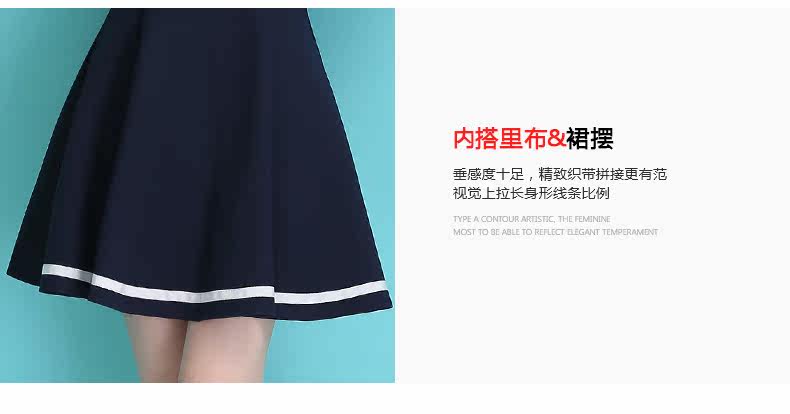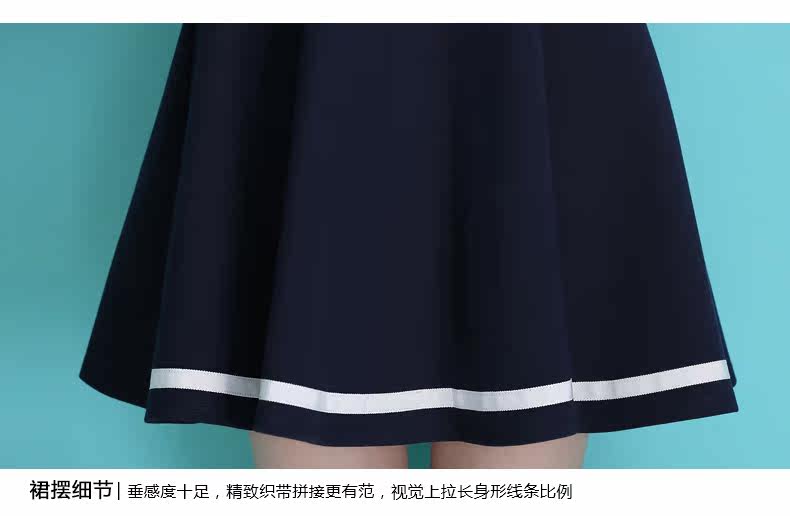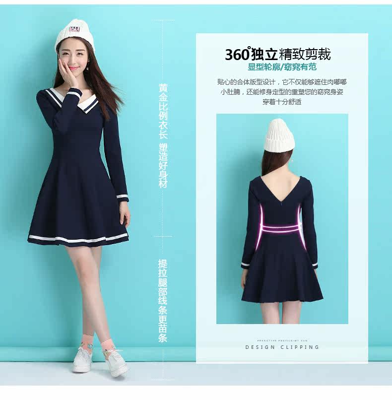 夏装女装新款小清新海军学院风日系V领修身拼色打底连衣裙女