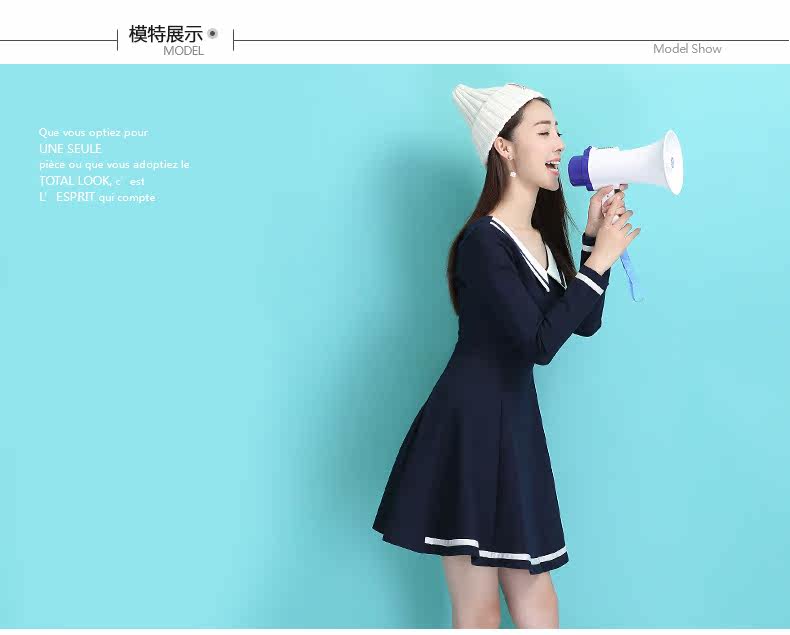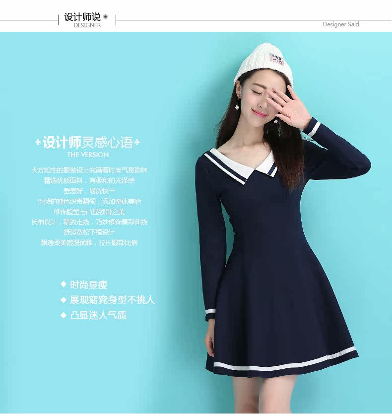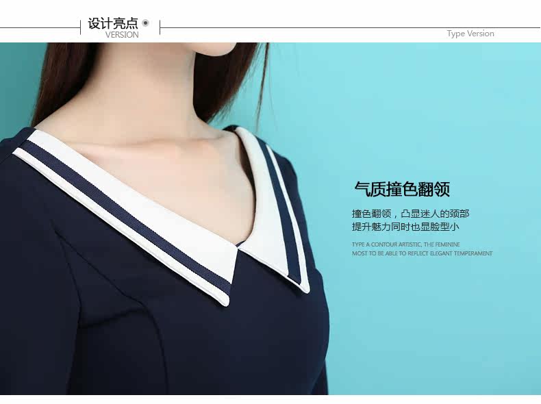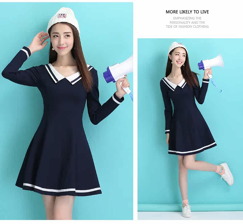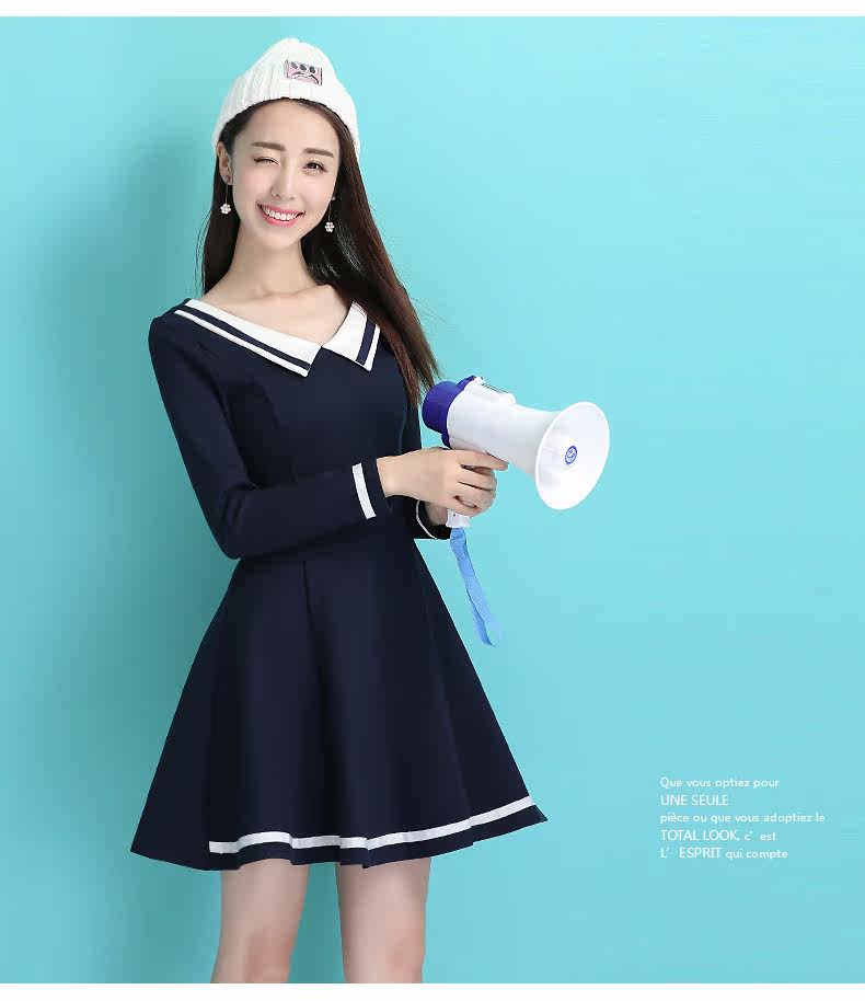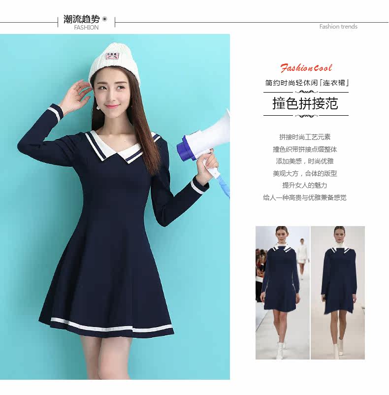 夏装女装新款小清新海军学院风日系V领修身拼色打底连衣裙女