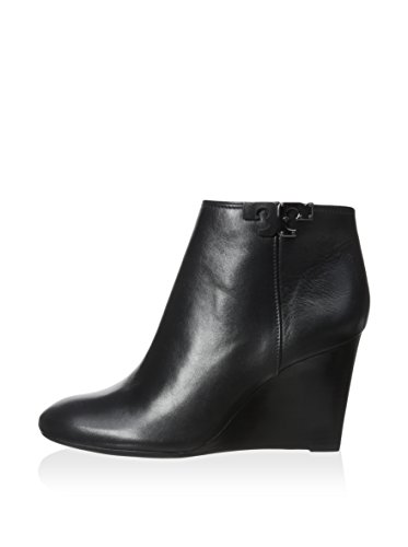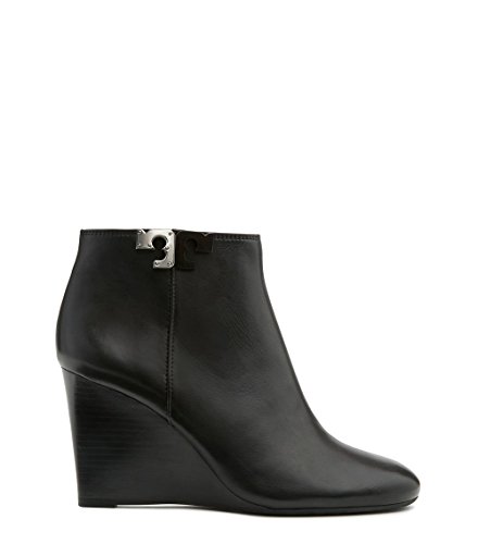 The Lowell Wedge Bootie deconstructs our signature 'T' with a unique color-blocked effect. A subtly graphic detail, it perfectly offsets the flattering height and classic shape of this chic high-heel design. Made of fine-grain calf leather, it's an elevated new take on a favorite day-to-evening silhouette.Feature