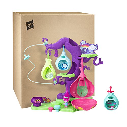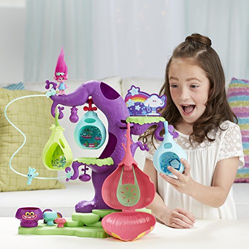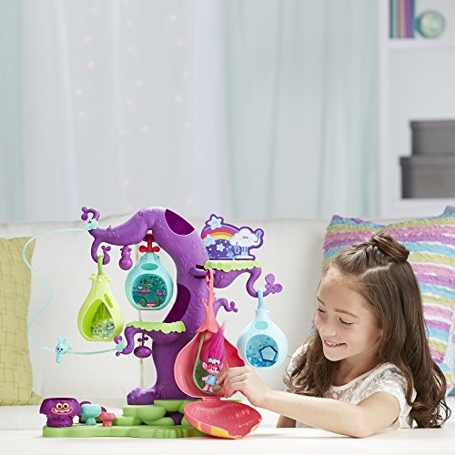Welcome to the vibrant town of the DreamWorks Trolls, where a song can lift anyone up, and it’s encouraged to let your true colors shine! Kids can build and explore their own version of this magical village with the DreamWorks Trolls POD'ular Troll Tree! It's over 16 inches tall for tons of trolltastic fun. Customize the tree's look by rearranging the movable pods. There are 4 different hanging pods, including 1 with a lounge area for the DreamWorks Trolls Poppy figure. Send Poppy and her friends (additional figures sold separately) zooming from the top to bottom by clipping their hair to the zipline. That's not the only way down -- the tree also has a slide for getting down in a hurry. Pretend the Bergens are near. . .kids can help Trolls seek refuge in the tree's hiding places. With so many ways to play, it's a hair raising good time!