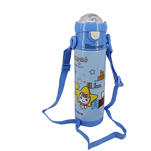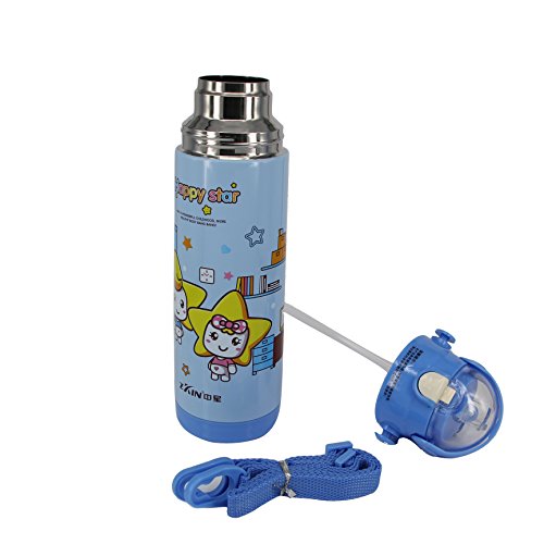 Kids Stainless Steel Vacuum Insulated Water Bottle with Straw Leak Proof Flask Thermos Bottle Blue
