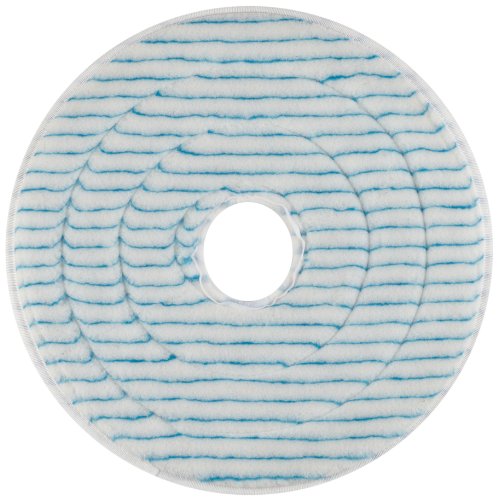 The Glit 23442 scrubbing floor pad is made of a polyester resin blend, has a 17" diameter, and is suitable for use on a floor machine (sold separately) with 175 to 300 revolutions per minute (rpm).