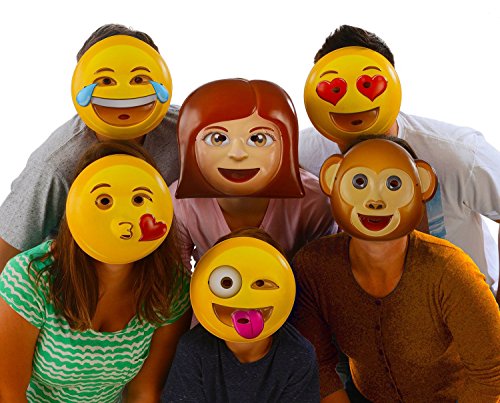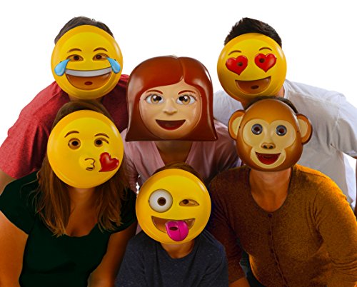 Every order includes 6 Emoji Masks for the Halloween Party: Order Comes with Tears of Joy, See No Evil, Hear No Evil Monkey, Concierge Girl, Kissy Face, Heart Eyes & Winking with Tongue.