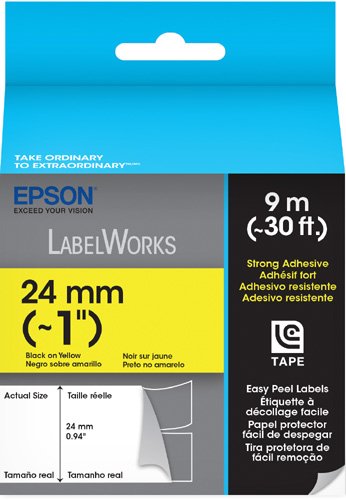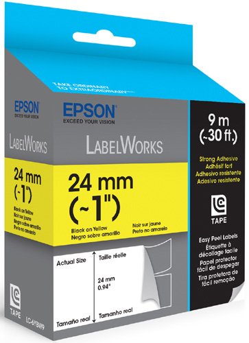 Epson LabelWorks Strong Adhesive Easy Peel Label Tape Cartridge ~ 1-Inch Black on Yellow (LC-6YBW9)