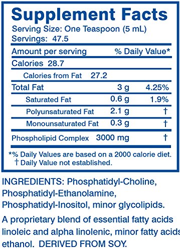 - 3000 mg Phospholipid Complex Per 1 teaspoon (5ml) serving