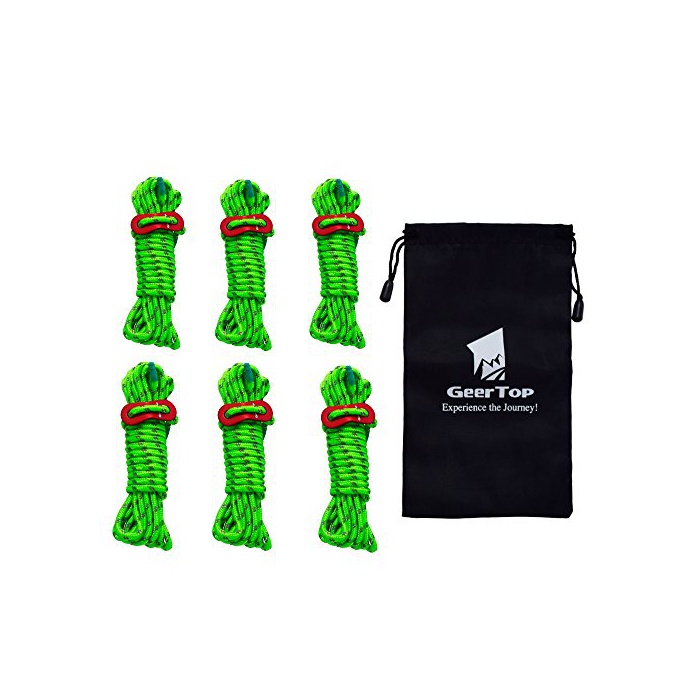 GEERTOP 4mm 반사재 들어감 코드 가이라인 텐트 가이드 로프 알루미늄 tensioner 부착 4m 6개 (그린)