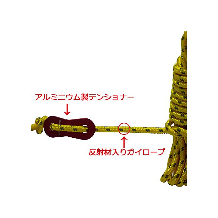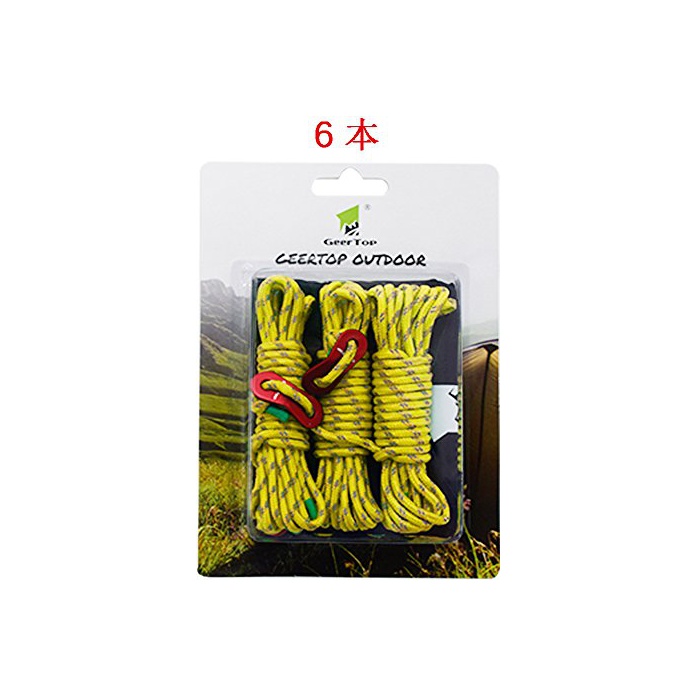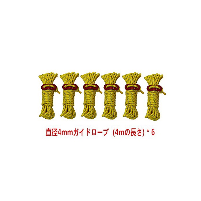원본상품명: GEERTOP テント ロ?プ 反射材入りパラコ?ド ガイライン ガイドロ?プ アルミニウムテンショナ?付き 4mm * 4m 6本