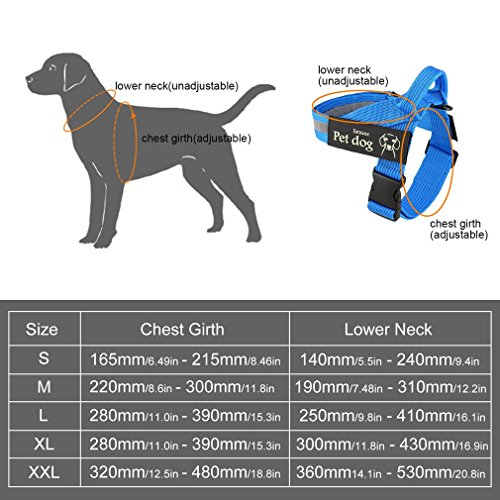 Specification: Material: Nylon Chest size: ?????????S: 47-65CM ?????????M: 56-74CM ?????????L: 61-81CM ?????????XL: 67-92CM ?????????XXL: 80-114CM Strap Width: 50mm Buckle width: 60mm Type: Harnesses Pattern: Solid Package inlcluded: 1 x Dog harness vest????