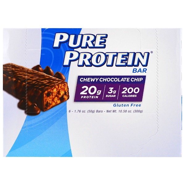 Pure Protein, Chew Chocolate Chip Bar, 6 Bars, 1.76 oz (50 g) Each