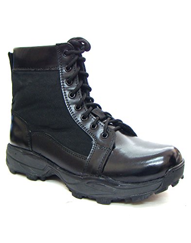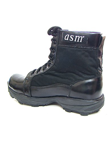 Product Description ASM Pure Black Leather light weight Tactical Boots. Boots are made of fine quality Soft, the process makes the shoes highly durable, water resistant and comfortable fitting, Leather Insole, Fully Leather Lining and PU Foot pad for Optimum Comfort. 0