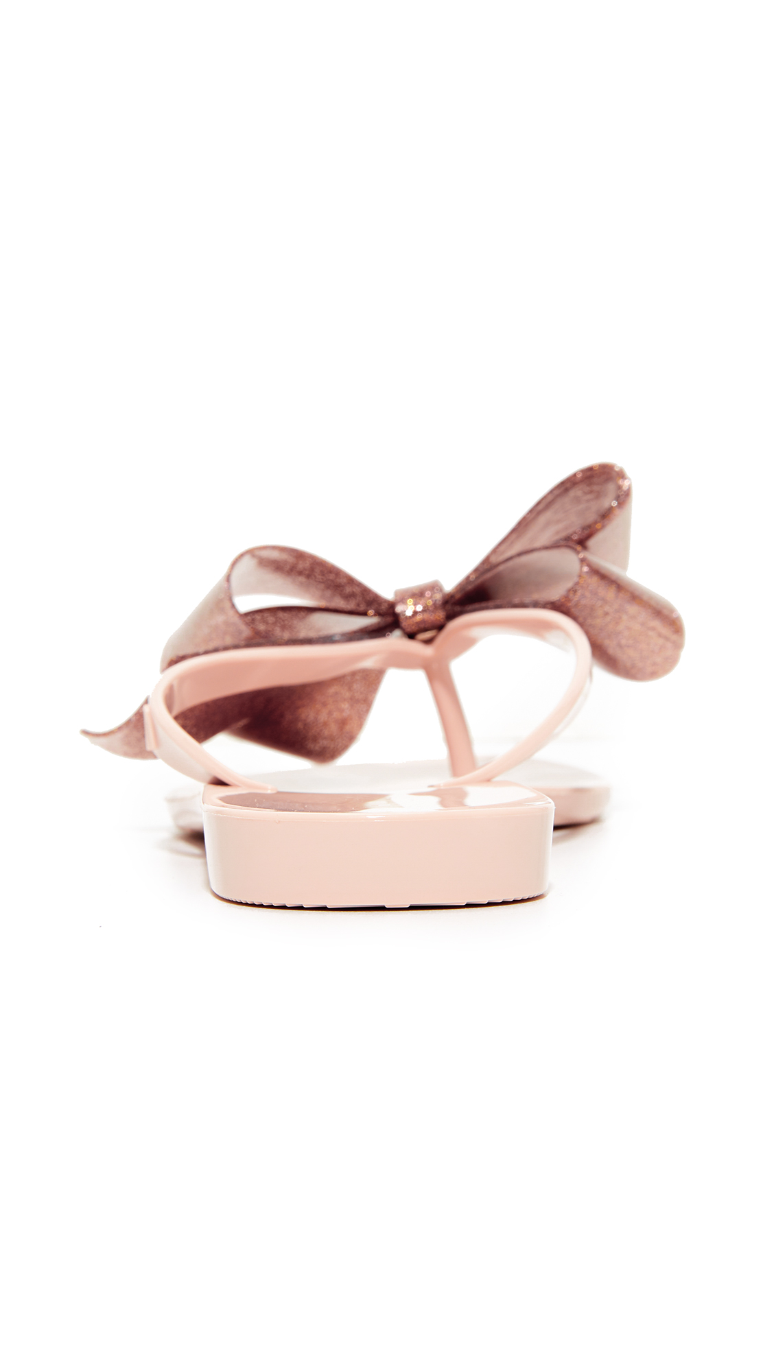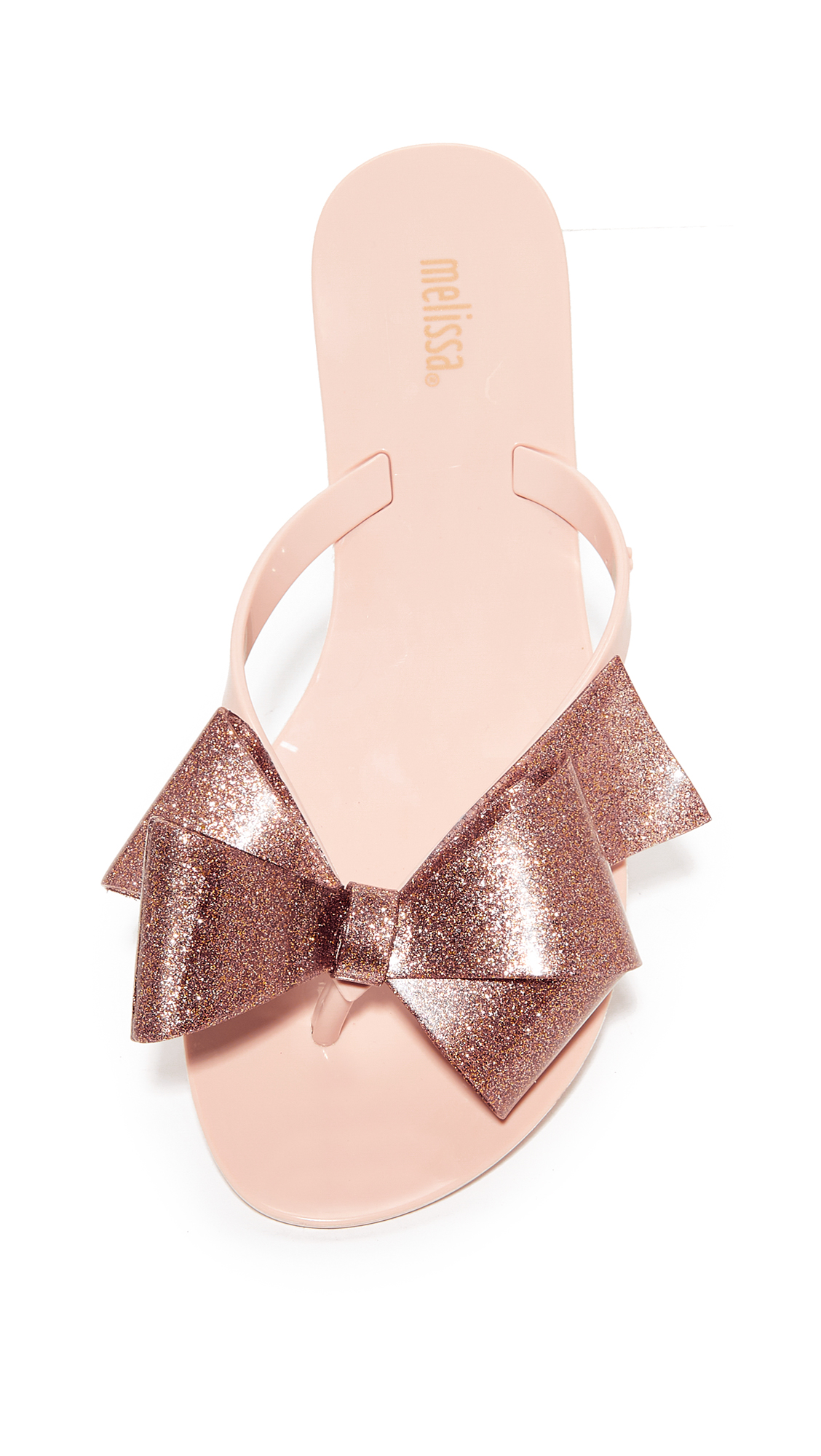 A bold, glittery bow details the thong strap on these rubber Melissa flip-flops. Rubber sole.