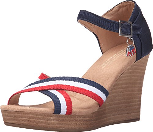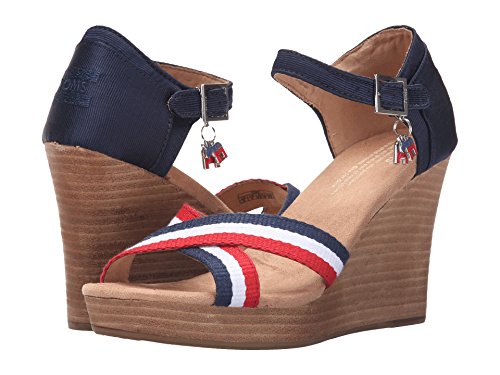 Binding : Apparel Product Description Textile upper with a navy grosgrain contrast heel and striped criss-cross stripes at vamp. Removable donkey and elephant charms on both shoes. Ankle strap with side buckle for a secure and adjustable fit. Soft textile lining offers a comfortable next-to-skin feel. Cushioned comfort insole with antimicrobial sock liner. Wood stacked wedge. Durable rubber outsole with excellent traction. Imported. 0