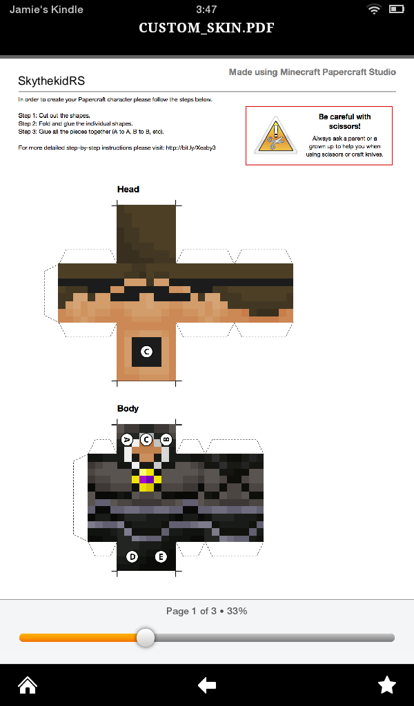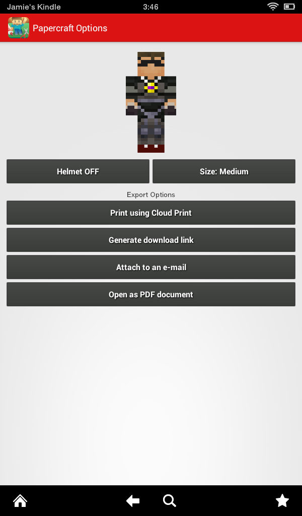 - Feature : The only official Minecraft Papercraft app! / Import a Minecraft.net skin by entering a username / Print one of our popular Minecraft skin designs! / Print 3D blocks (such as grass blocks, diamond blocks, TNT, beds, doors and more!) / Print Items (such as pickaxes, swords, diamonds + more!) / Supports the new Minecraft skin format! (Individual arms, legs and clothing layers)