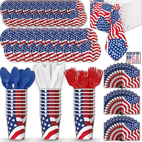 (HeroFiber)/Kitchen Dining/Bar Tools Glasses/DIRECT FROM USA/American Flag Paper Dinnerware for 24 - 2 Size Plates, Cups, Napkins , Cutlery (Spoons, Forks, ...