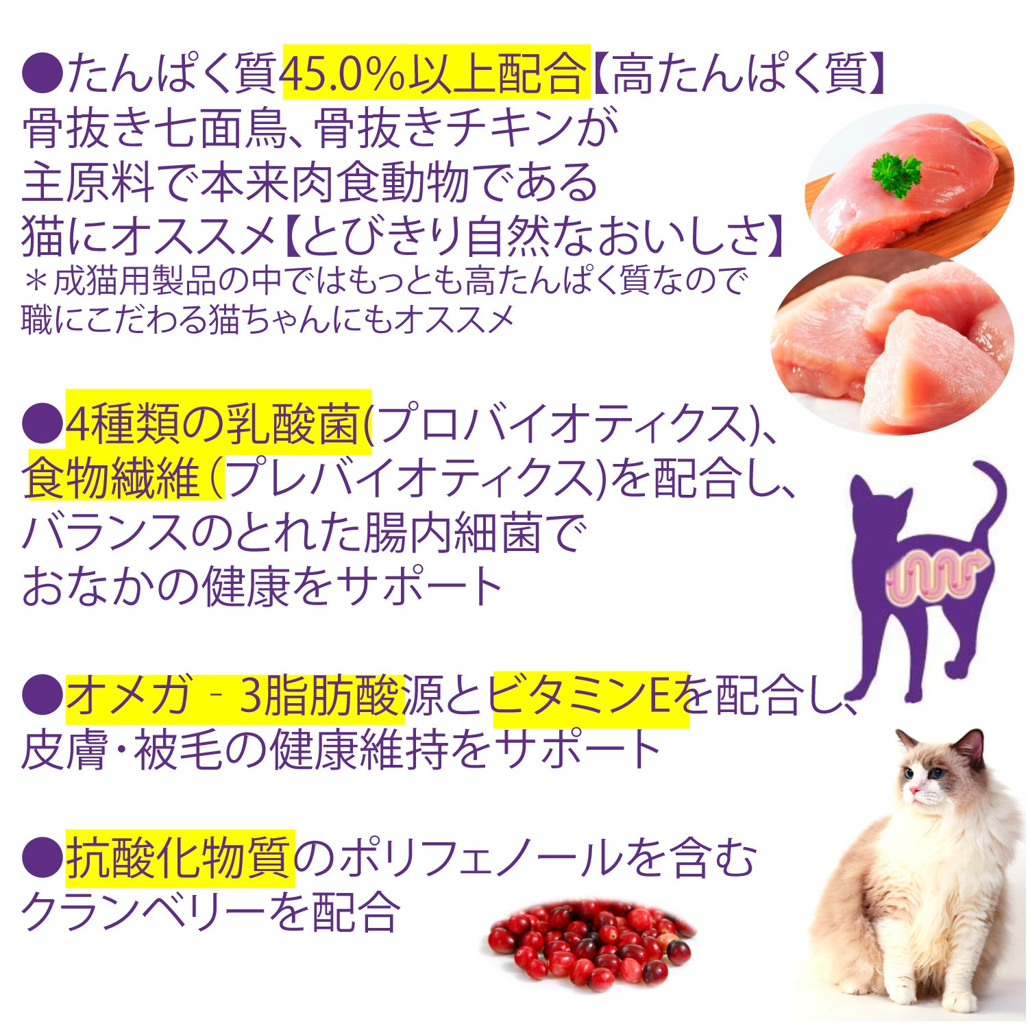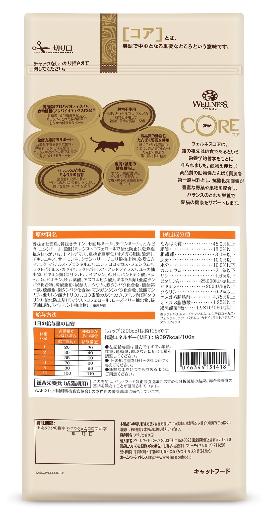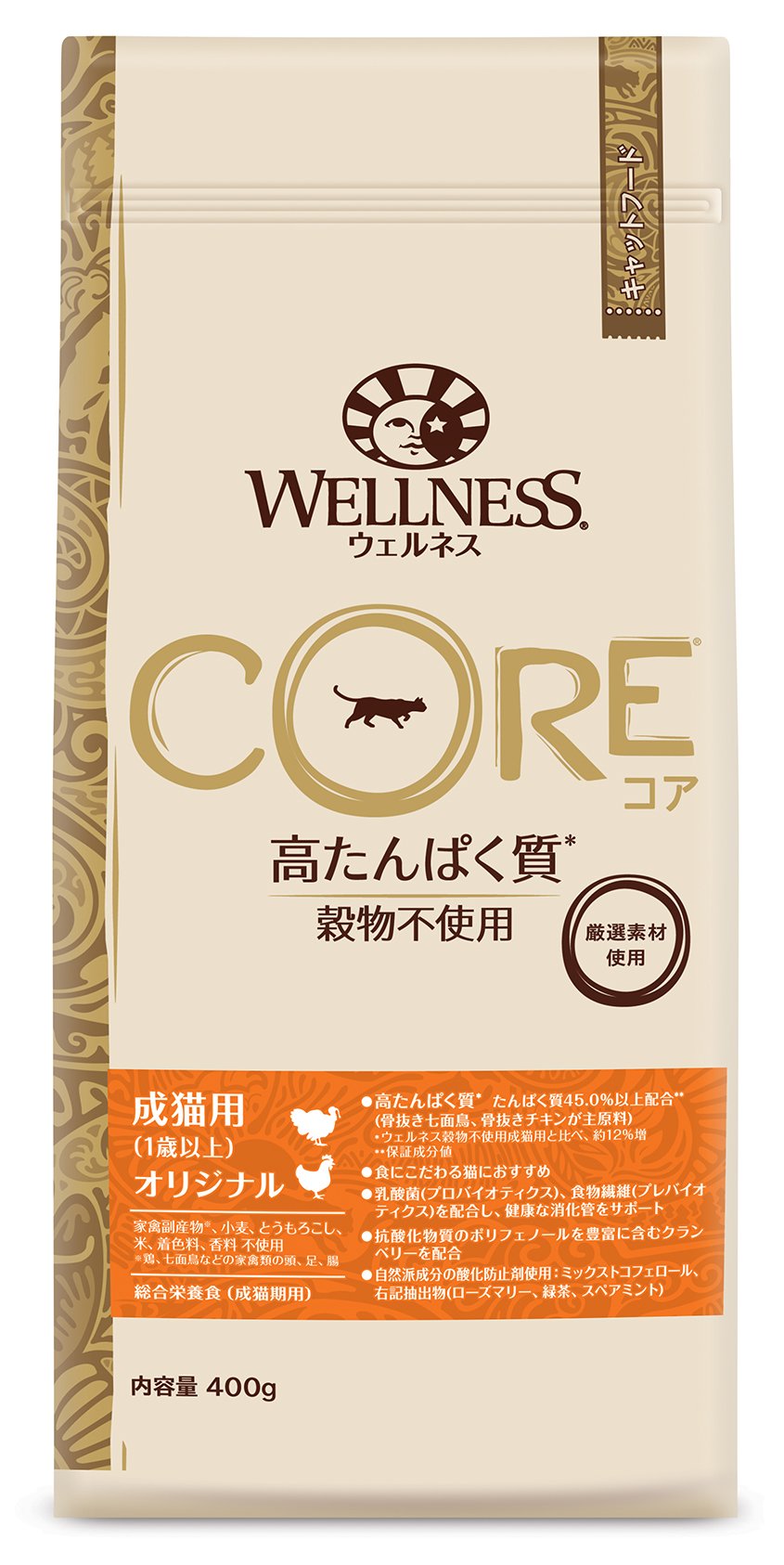 "Core (grain non-use · high protein) Original for cats" is high protein with 1> Protein 45.0% or more (boneless turkey, boneless chicken is the main raw material).