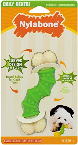 Nylabone Daily Dental Dog Chew, Curved Design, Dental Ridges for Clean Teeth, Bacon Flavor (SMALL)
