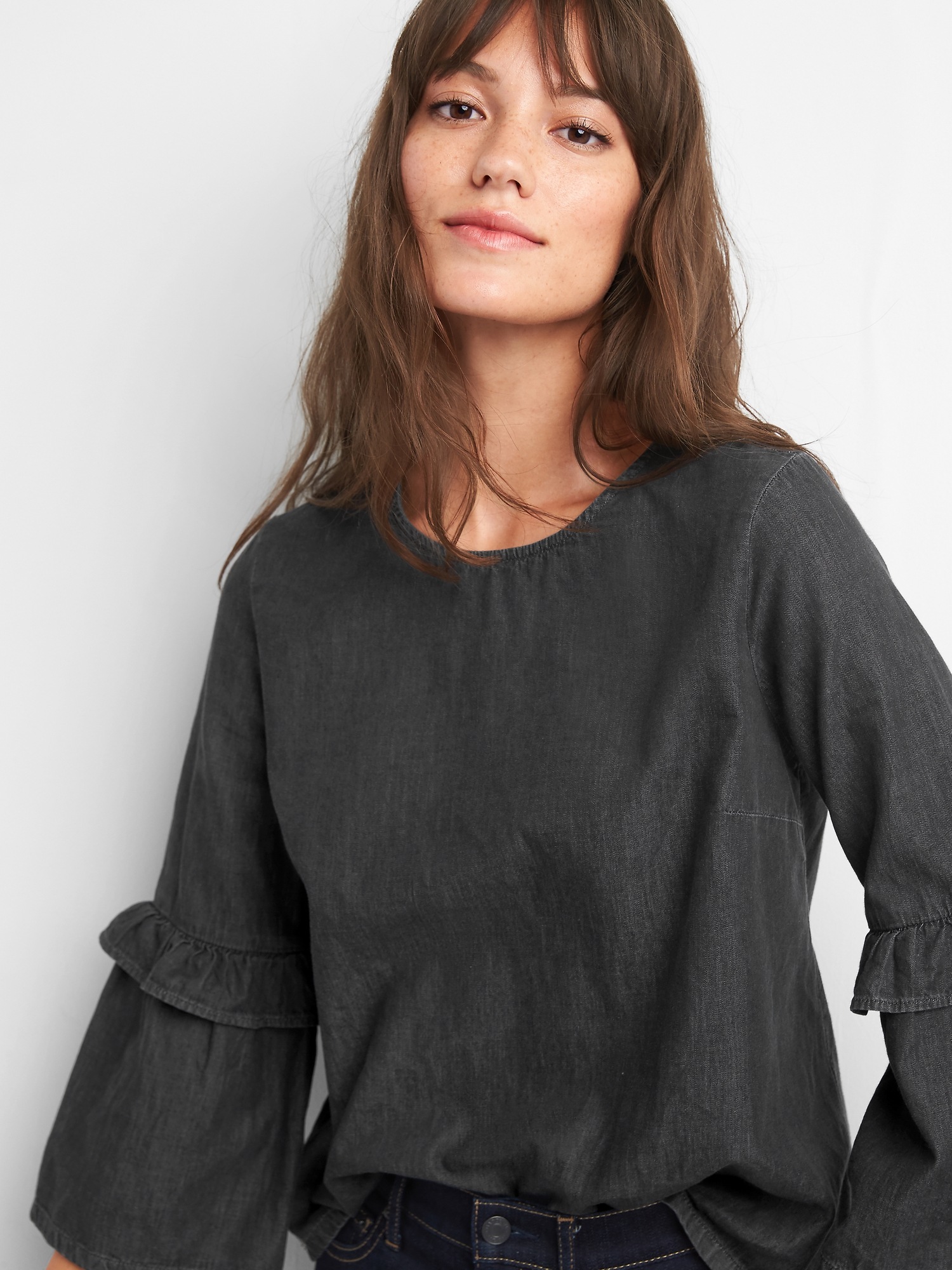 Gap Denim ruffle sleeve top