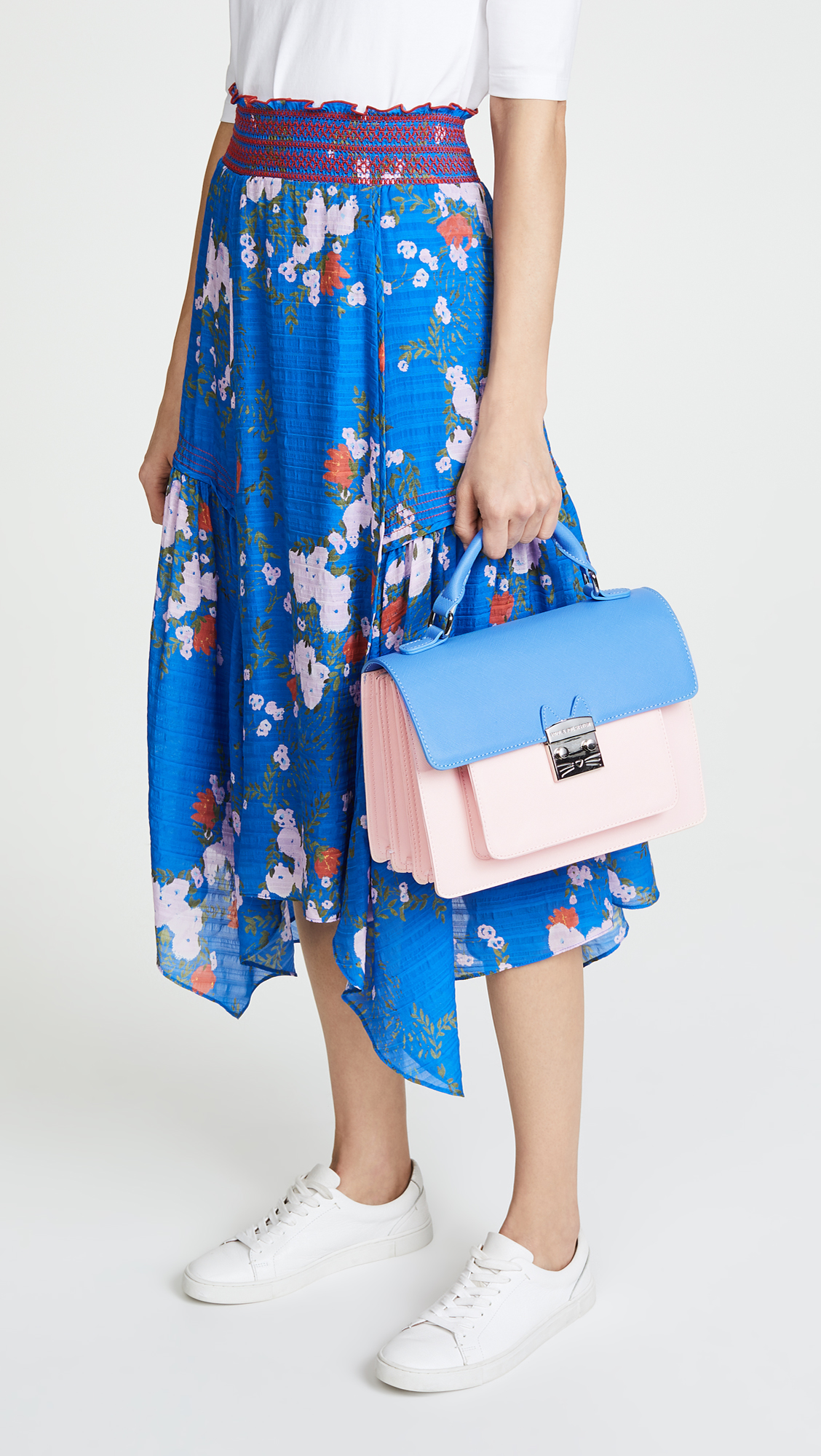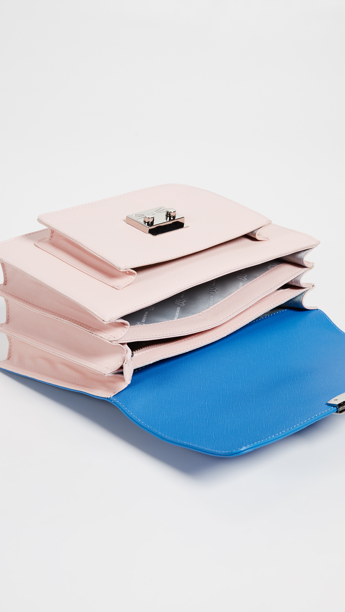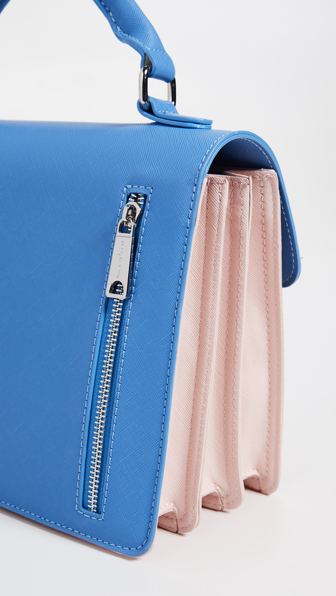 Fabric: Faux leather Silver-tone hardware Colorblocked Push-button clasp at front Zip exterior pockets Pouch interior pockets Zip interior pockets Adjustable straps Removable straps Lined Dust bag included Weight: 31oz / 0.88kg Imported, China Style #PAJOE30403