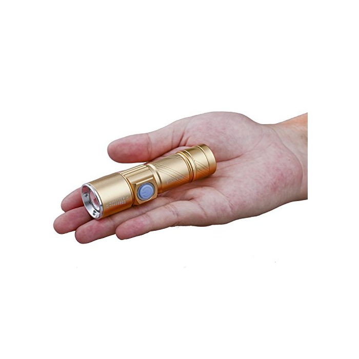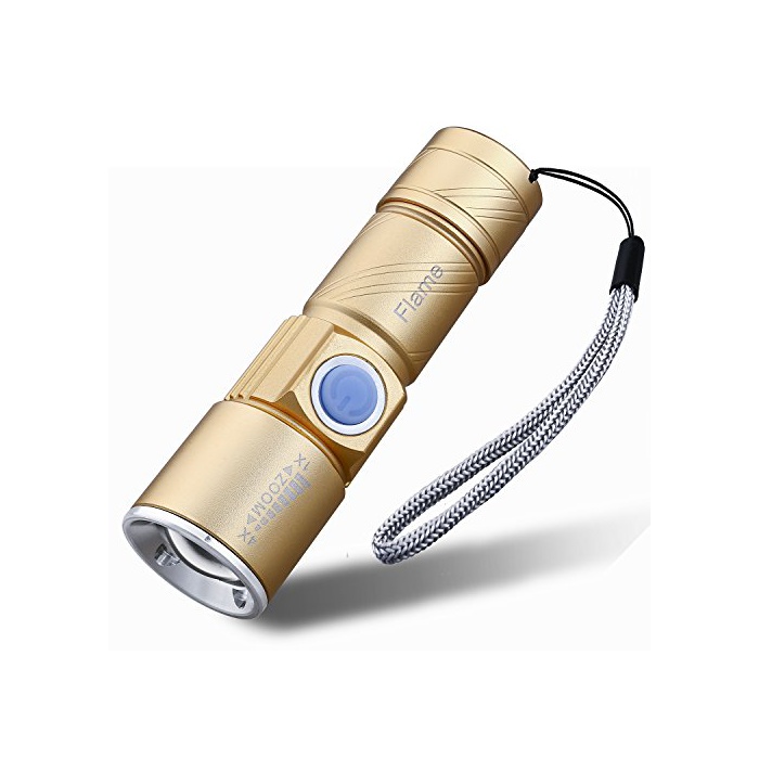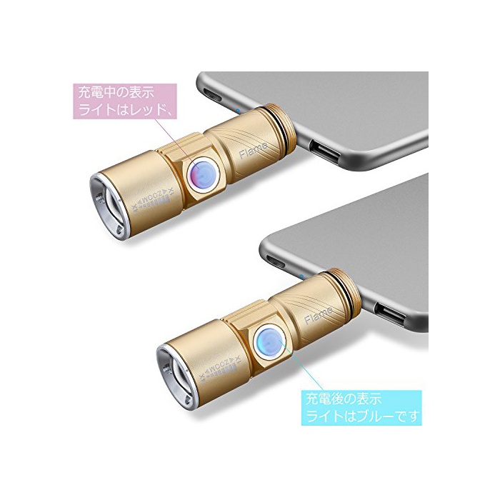 원본상품명: Flame ?中電? 超小型 LED ライト USB充電式 ハンディライト 高輝度 防水 防災 ズ?ム機能付 (金色)