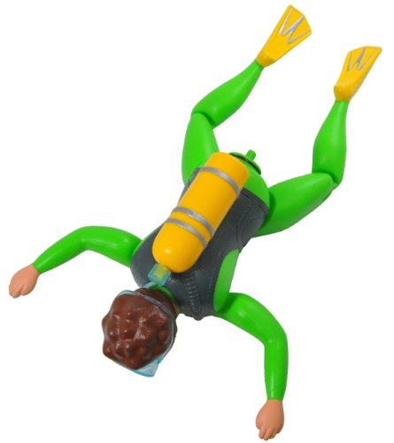-. Feature : Battery Operated Scuba Diver (Blue or Green) / Swims in water / Crawls on land / Measures 10" in length / 1 AA battery required (not included)