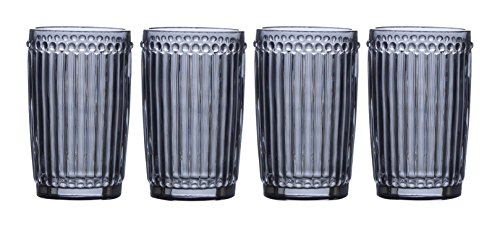 Studio : Mikasa Publisher : Mikasa Binding : Kitchen Product Description Mikasa Italian Countryside barware takes you around the world to the rolling hills of Tuscany with its gem-tone colors and vintage, textured design. These highball glasses feature a flute and dot pattern with a deep, Smokey gray body, creating a stylish look that's ideal for casual entertaining. Each glass holds 12 ounces. Set of 4. Dishwasher safe. 0