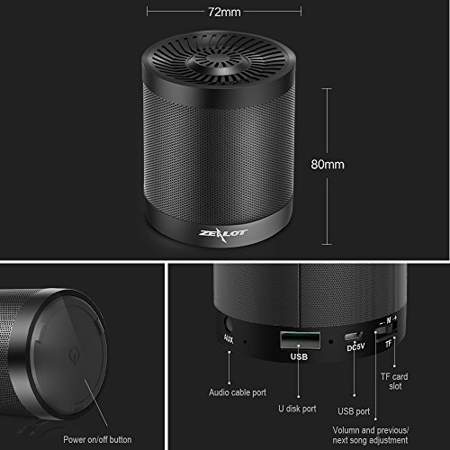 Bluetooth Speakers Portable ZEALOT S5 Wireless Speakers Mini Loud Stereo Sound Rechargeable , Hand Free Microphone , USB Music Player , TF Card Support , 3.5mm Audio Jack - Black