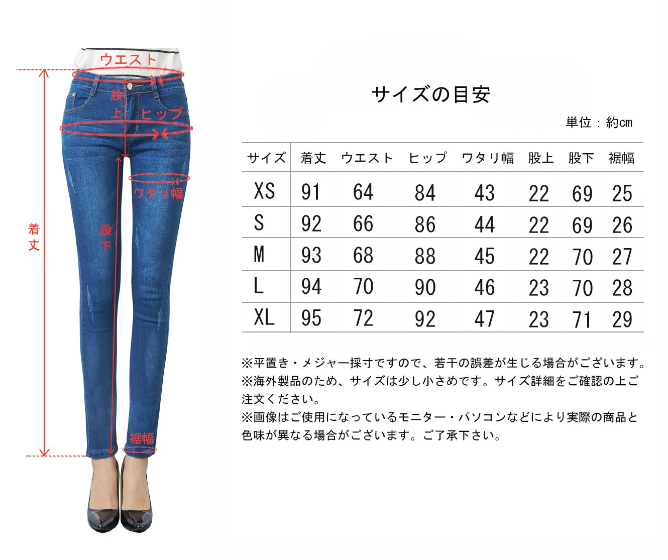 XL Length 95 / West 72 / Hip 92 / Wading 47 / Rise 23 / Inseam 71 / Hem Width 29