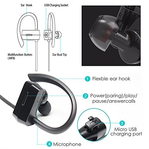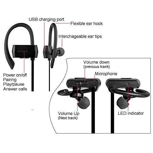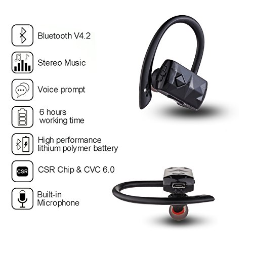 1. Bluetooth Standard: V4.1 EDR 2. Profiles Supported: Headset/ Hands-free/ A2DP/ AVRCP 3. Operating Range: 33Feet (10m) Noise-Canceling Technology: CVC6.0 4. Charging Means: Power adapter output (DC5V 150mah) 5. Battery: High-capability rechargeable lithium polymer battery 6. Bluetooth Operation: Class 2