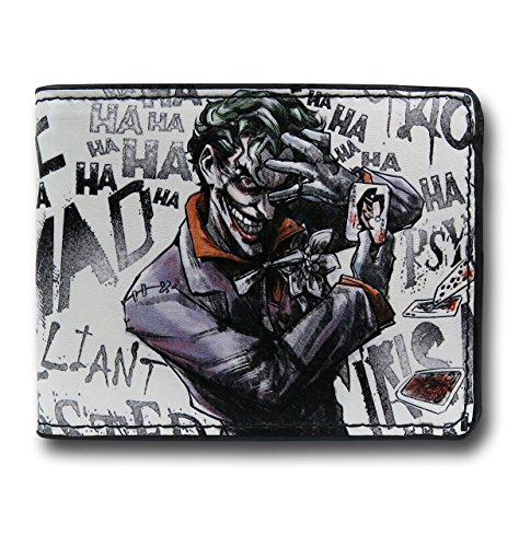 Studio : Buckle-Down Publisher : Buckle-Down Binding : Apparel Product Description This awesome men's bi-fold wallet is made from premium vegan leather. It measures 4.0x3.5x0.5 inches, and features the standard billfold, 5 card slots, and windowed id holder. The logos are applied using advanced printing technologies, so the wallet will still look good after years of hard use. This product is officially licensed by joker/Harley and made in USA by Buckle-Down Inc. 0