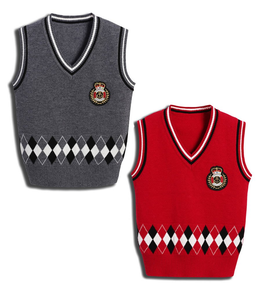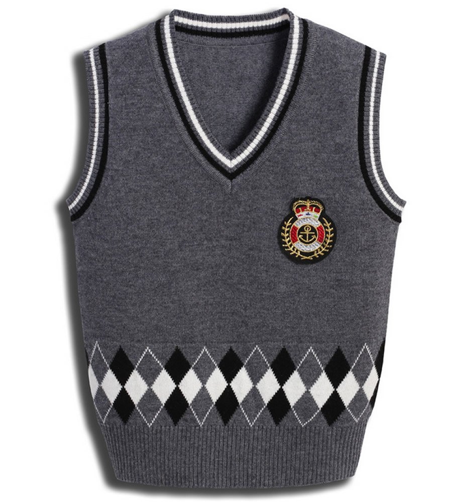 It is a knit vest with an embroidered patch on the left chest.