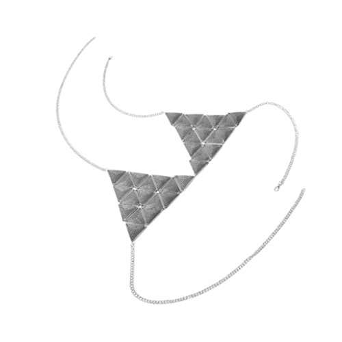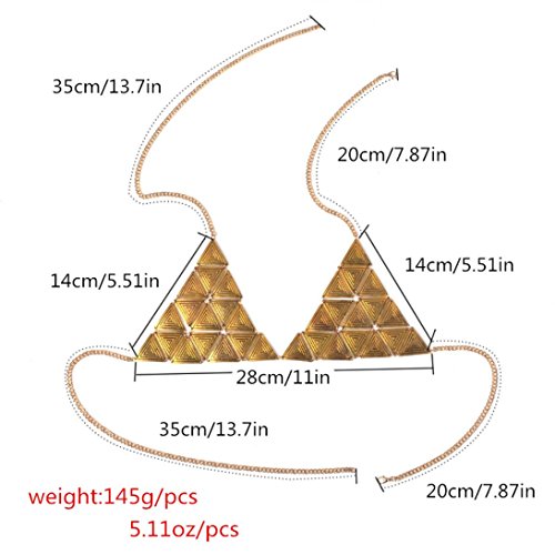 Product DescriptionFeature: ● 100% brand new and high quality. ● Quantity: 1PC ● Compact, Elegant, Stylish, ● New fashion design, Very popular ● Material:Alloy ● Triangle length: 14CM ● Chain neck length: 55CM ● Bust: 83CM Package Include: ● 1PC Body Chain(Without retail package)0