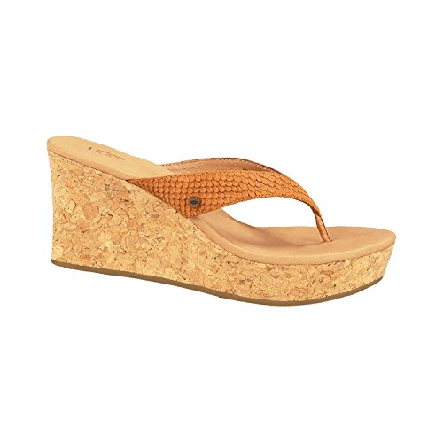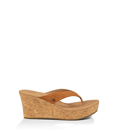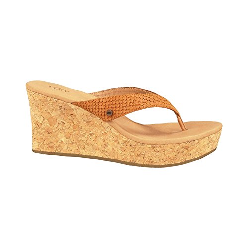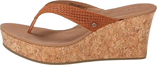 Studio : Deckers Outdoor Corporation Publisher : Deckers Outdoor Corporation Binding : Apparel Product Description This season's scale-embossed suede brings a touch of exotic charm to this warm-weather wonder. Ultra-wearable and unbelievably lightweight, the Natassia Mar's 3" sculpted cork wedge features an extra-cushioning Poron® footbed, so you can enjoy those extra daylight hours in ultimate UGG® comfort. Collection Details: Insole: Plush Poron® foam cushioned, leather lined footbed with added arch support and heat-embossed UGG® logo. Outsole: 3" sculpted wrapped wedge with 1" platform. Molded rubber outsole with signature "U" interlocking design. Style Details: Exotic scale embossed suede sculpted wedge sandal Antiqued metal UGG® logo rivet on strap Lightweight cork wrapped midsole 0