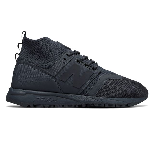 The men's 247 Mid-Cut sneaker adds a sporty twist to the classic 247 profile with a higher-cut knit bootie design. A lightweight and flexible synthetic suede and mesh upper and our signature REVlite midsole cushioning add lightweight support and all-day comfort to make this versatile sneaker an easy choice to complement your round-the-clock lifestyle. Durable construction and ultra-comfortable midsole cushioning make this men's sneaker the perfect fit for the demands of modern life.Learn More About New Balance