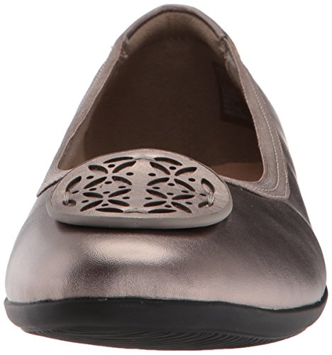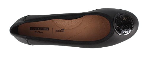 Product Description The Gracelin Lola is the all-season comfortable ballet flat from the Clarks Collection. Crafted from a smooth leather and synthetic upper, this flat feature a feminine round toe, Clarks Cushion Soft footbed, and a durable TR outsole that provides traction and flexibility. 0