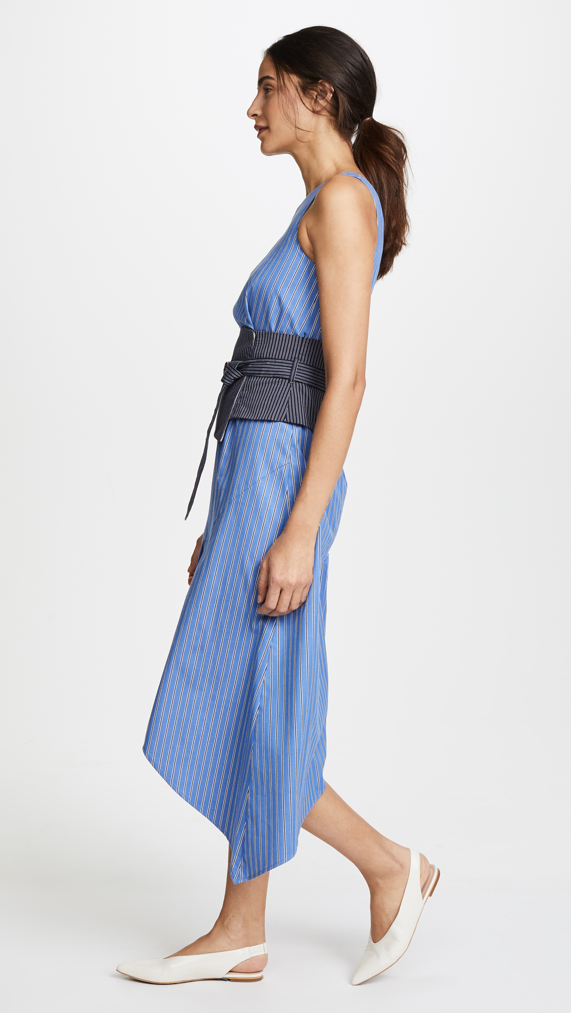 Sea Asymmetrical Belted Tank Dress