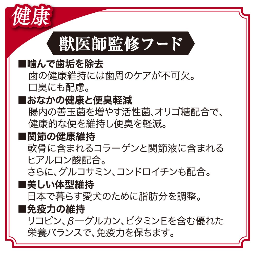 Ideal for senior dogs Maintain health with nutritional balance and keep youthfulness.
