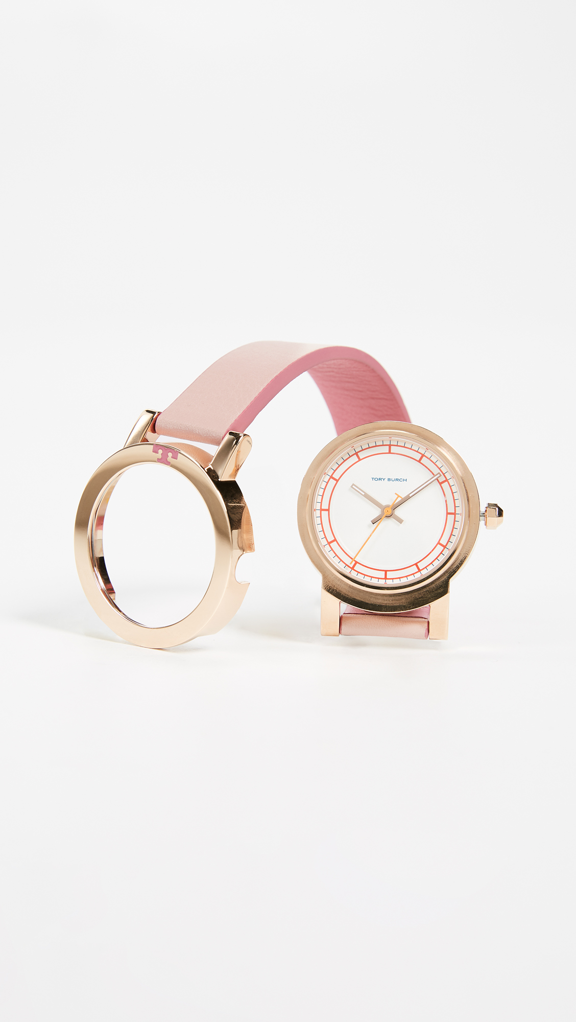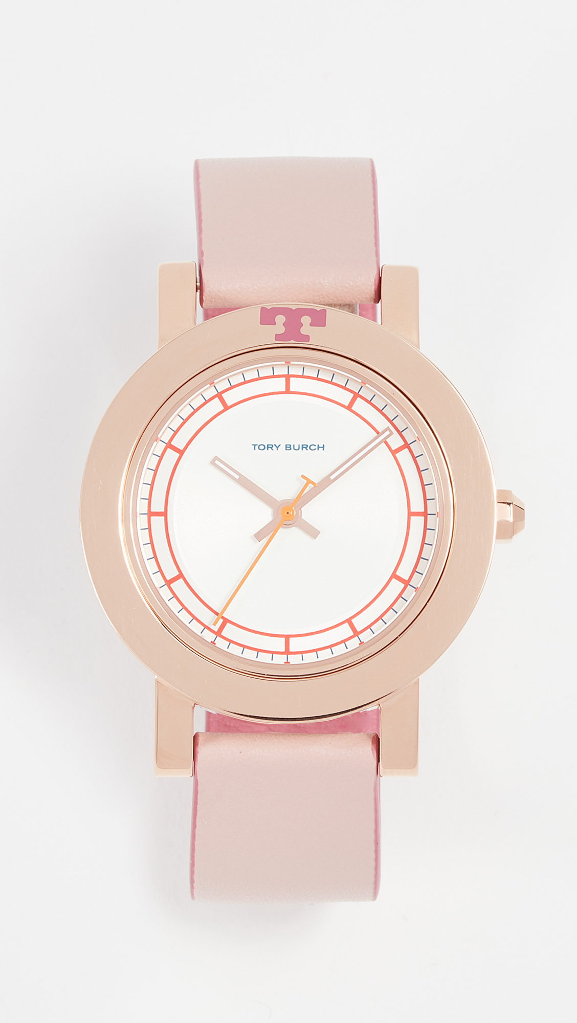 Clasp at dialLogo accent Water resistant to 30 meters 2-year manufacturer warranty Imported, China Style #TORYB46336