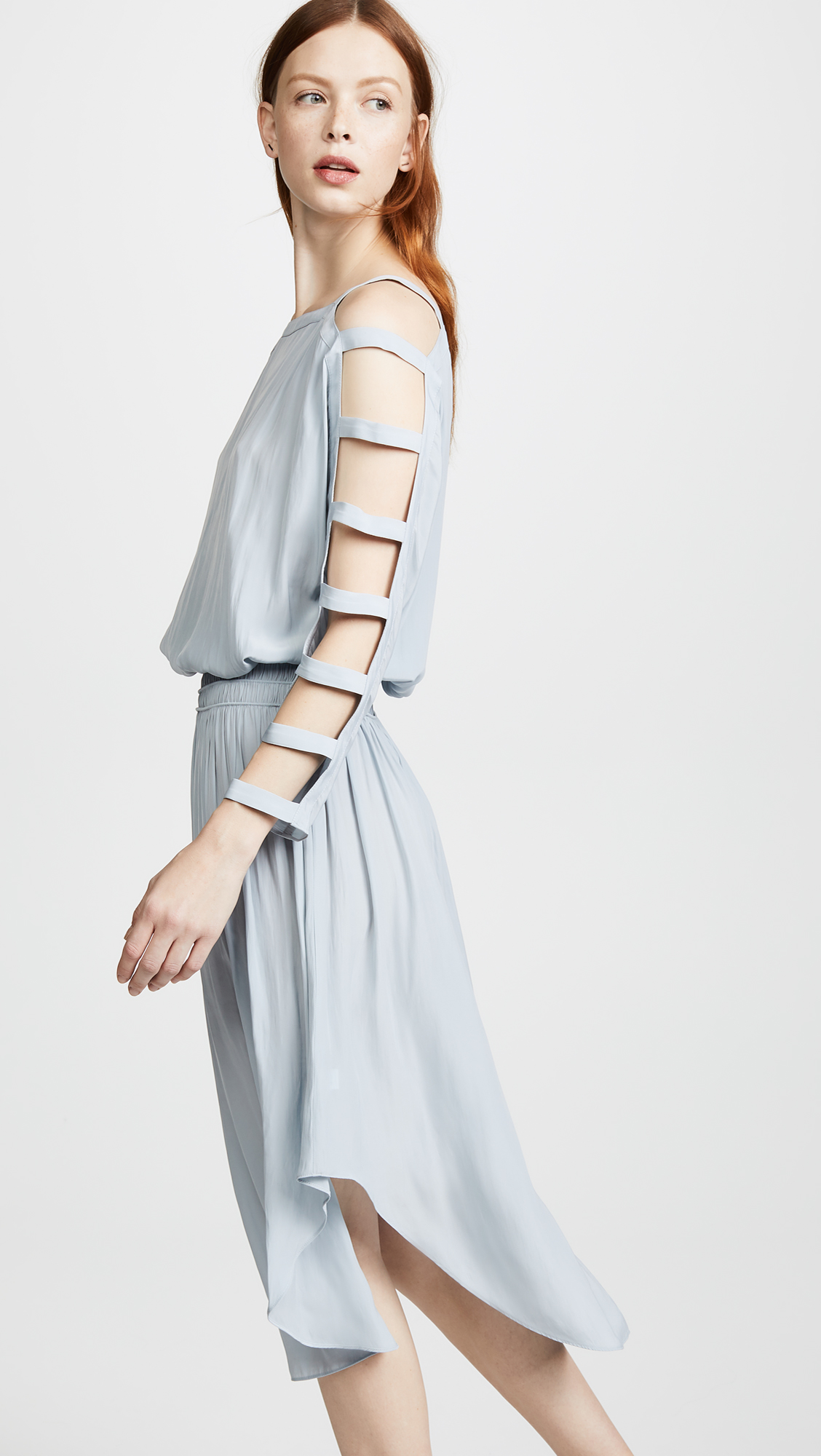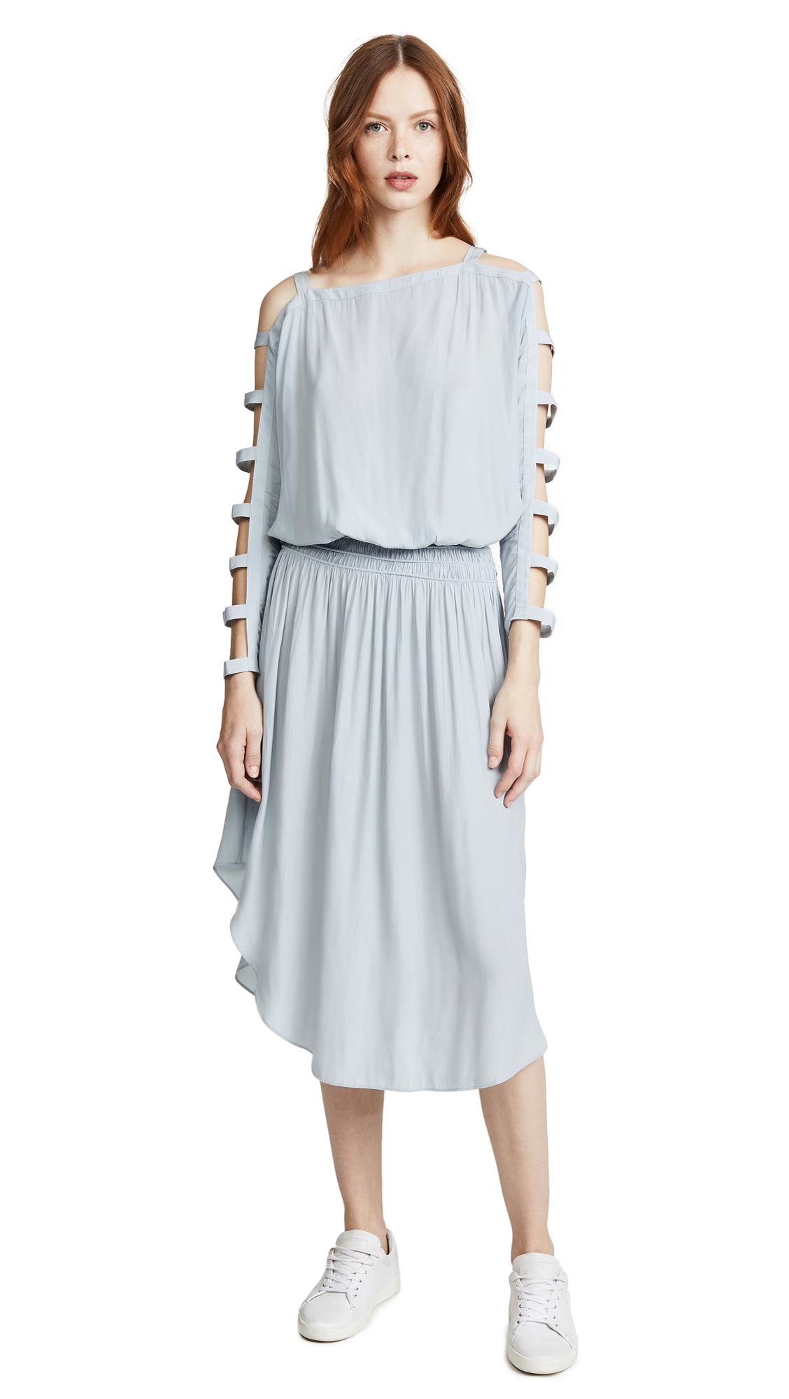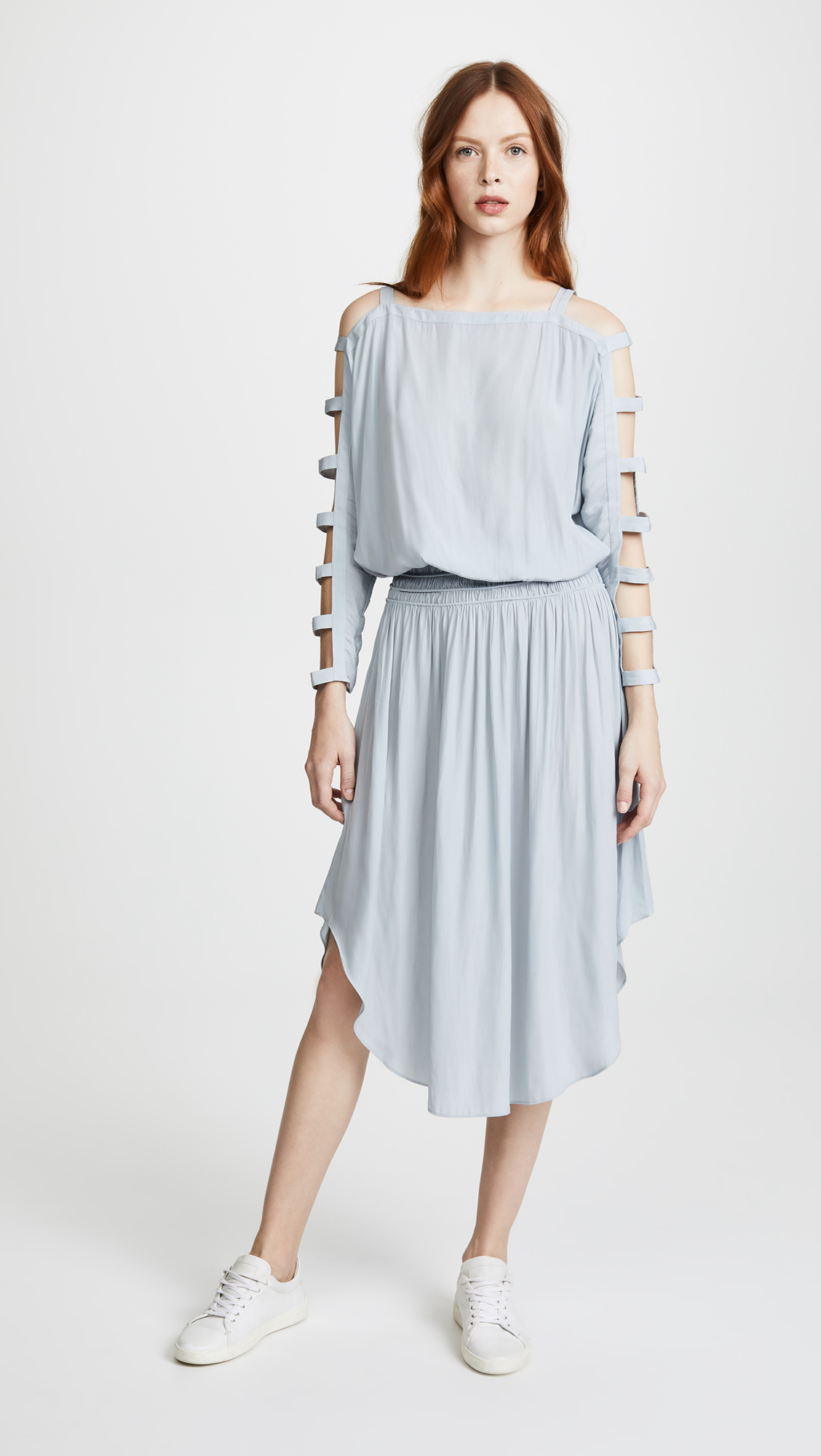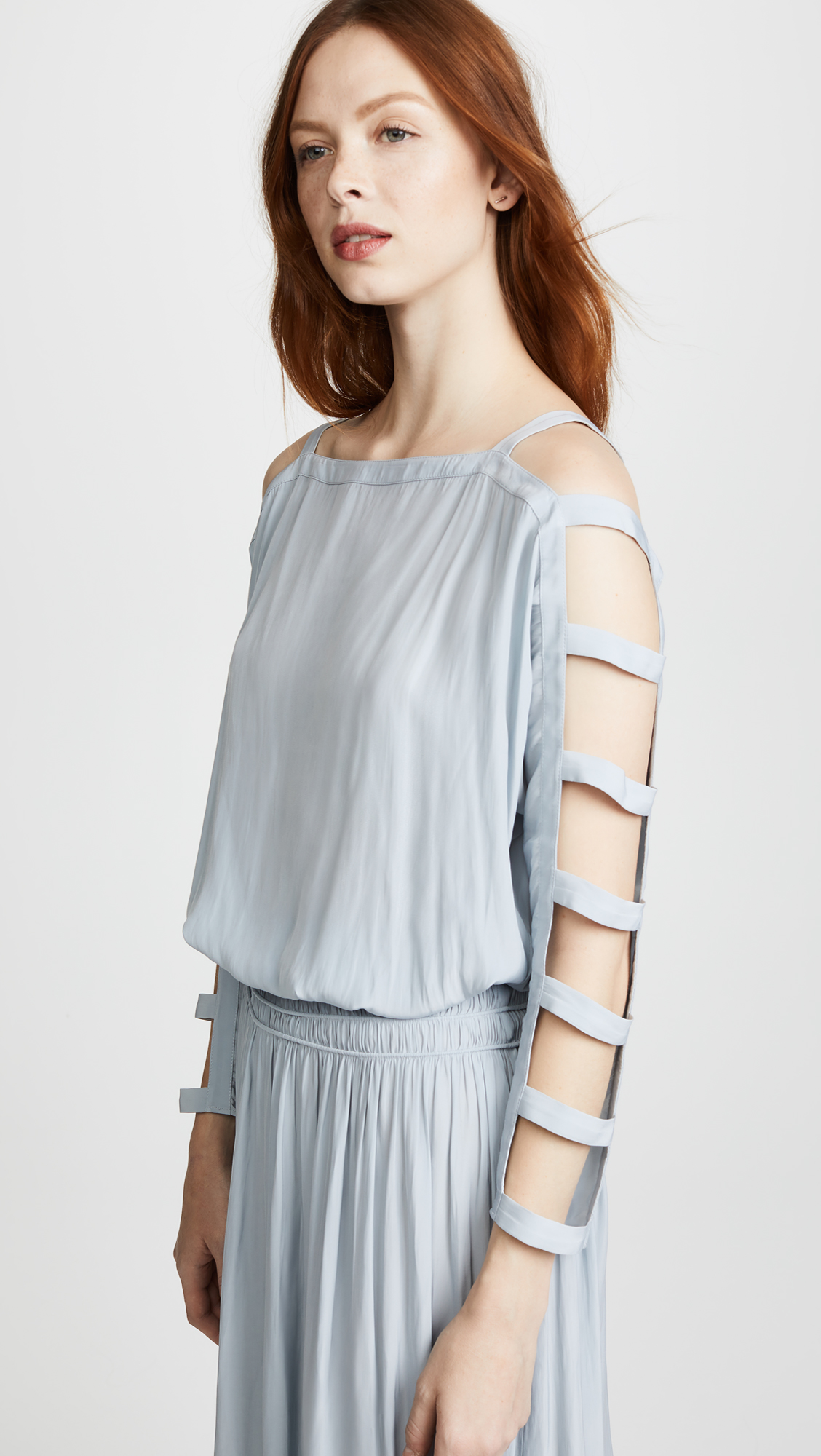 Fabric: Crepe Split dolman sleeves Maxi length Tank style Long sleeves Covered elastic at waist Unlined Shell: 100% polyester Dry clean Imported, China Style #RAMYB30822